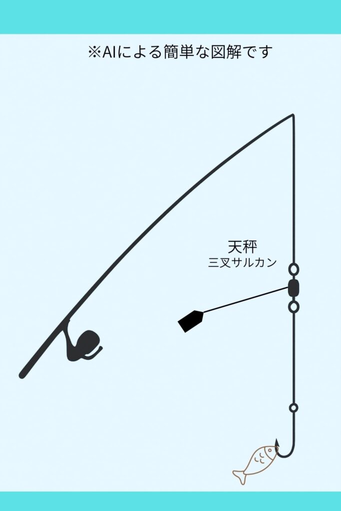 • 投げ釣り仕掛け同様、天秤まはた三叉サルカンをつける
