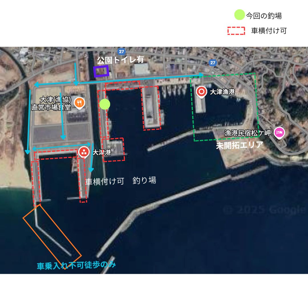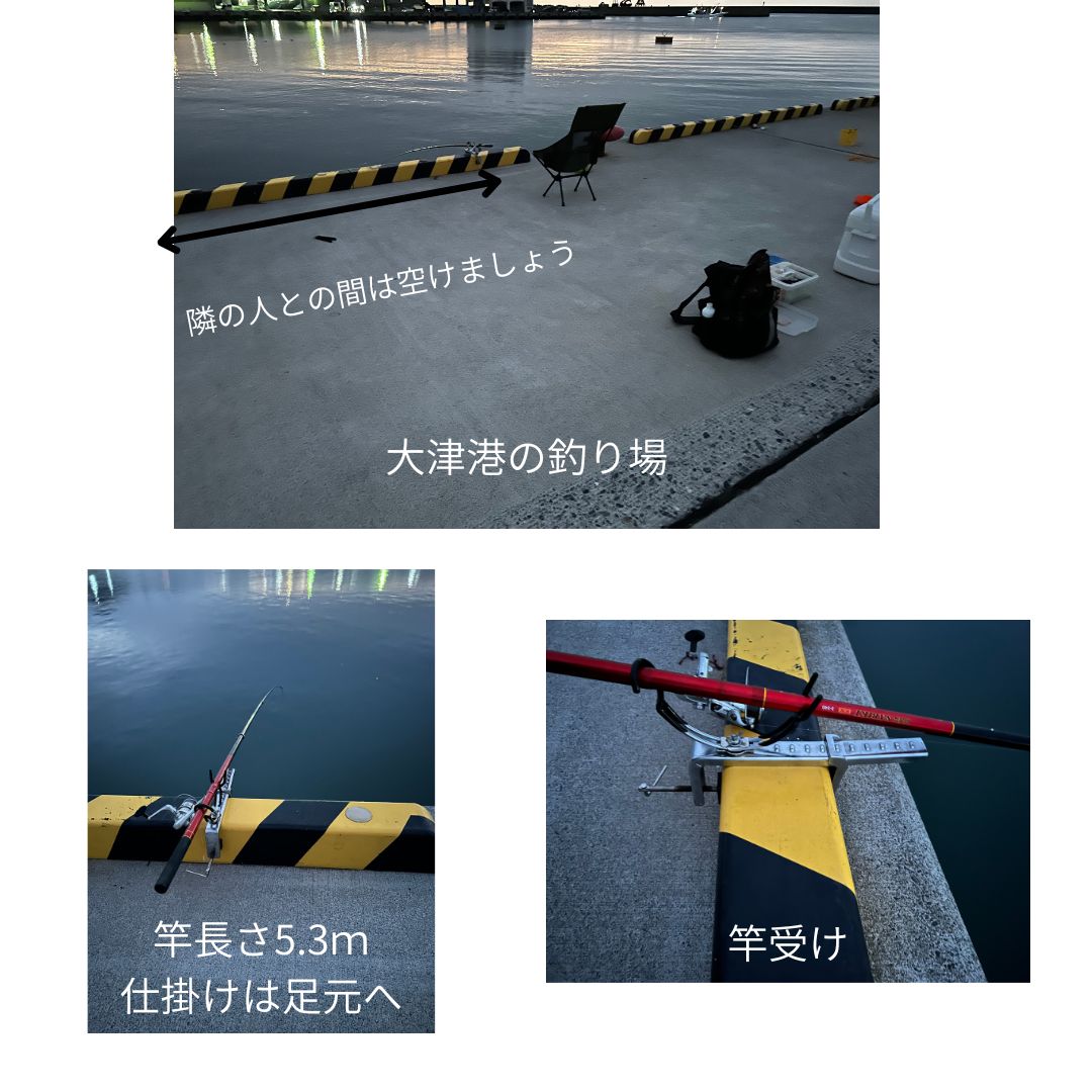 大津港は海釣り初めての方、家族釣れの方でも釣りにいきやすい場所となっています。昼間であれんば、近くに大津港直営の食堂があるので帰りに新鮮な海鮮丼など食べれるのでオススメします。漁港なので船が停泊していたり、漁に出ていた船が戻ってきたりするので、注意しましょう。最近の釣果はどの場所が釣れているのかは釣具屋さんが知っているので、釣りエサを買う際に聞いてみましょう。私が紹介した釣り侍さんは餌の解凍も対応してもらえるので釣りに行く時間を逆算して解凍の依頼もしてみるのもいいと思います。まだ行かれたことのない方、この記事を参考にぜひ大津港行ってみてください。